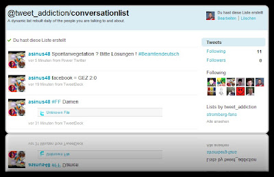 Dank sk4tz bin ich via twitter auf die Seite aufmerksam geworden, mit der sich jeder twitter-Benutzer seine eigene und persönliche “conversationlist” erstellen kann: http://conversationlist.com/