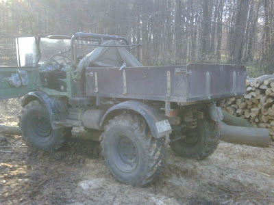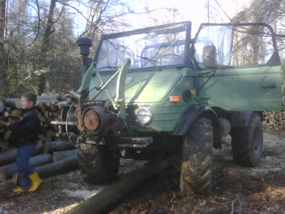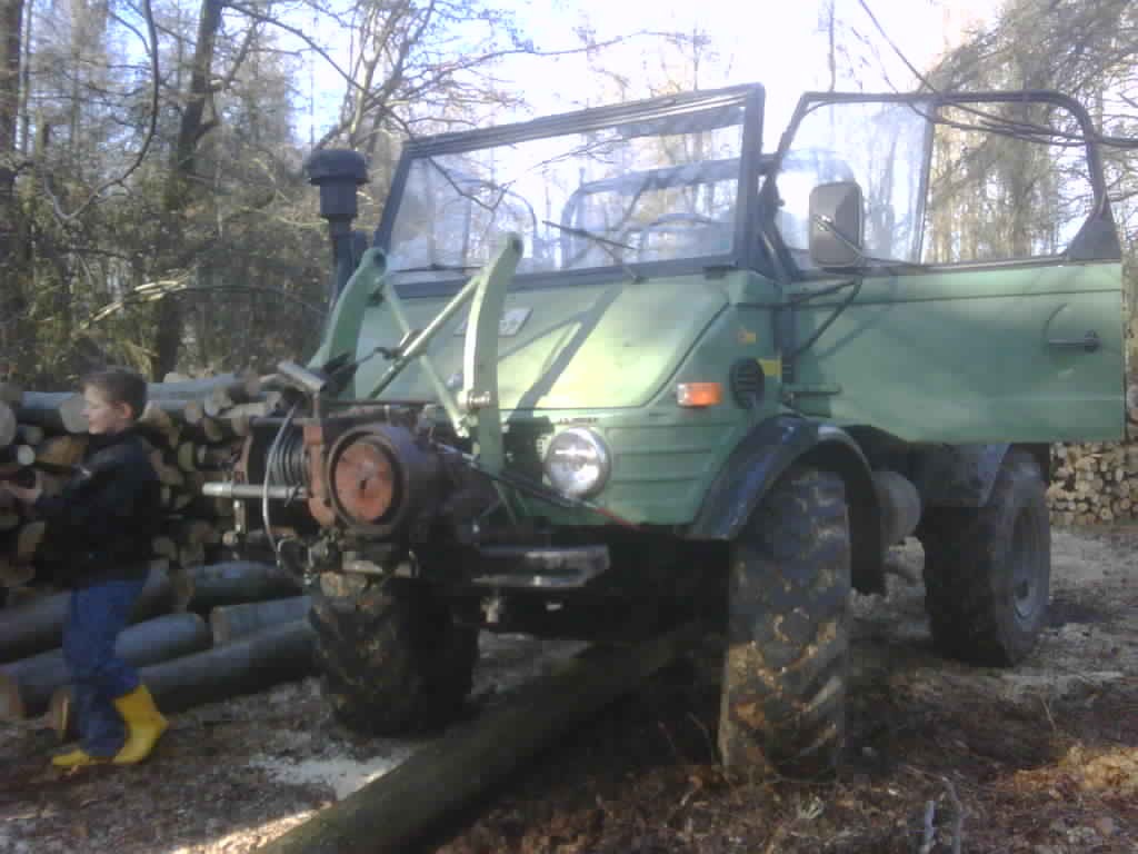 Ein Freund meines Vaters war bereits seit zwei Tagen mit einem Bekannten mit Waldarbeiten beschäftigt. Da das Gelände mehr oder weniger schwer befahrbar ist, waren die beiden mit einem Unimog unterwegs. Dieses Powerpaket war in der Lage, dank seiner Seilwinde Bäume regelrecht zu fällen.